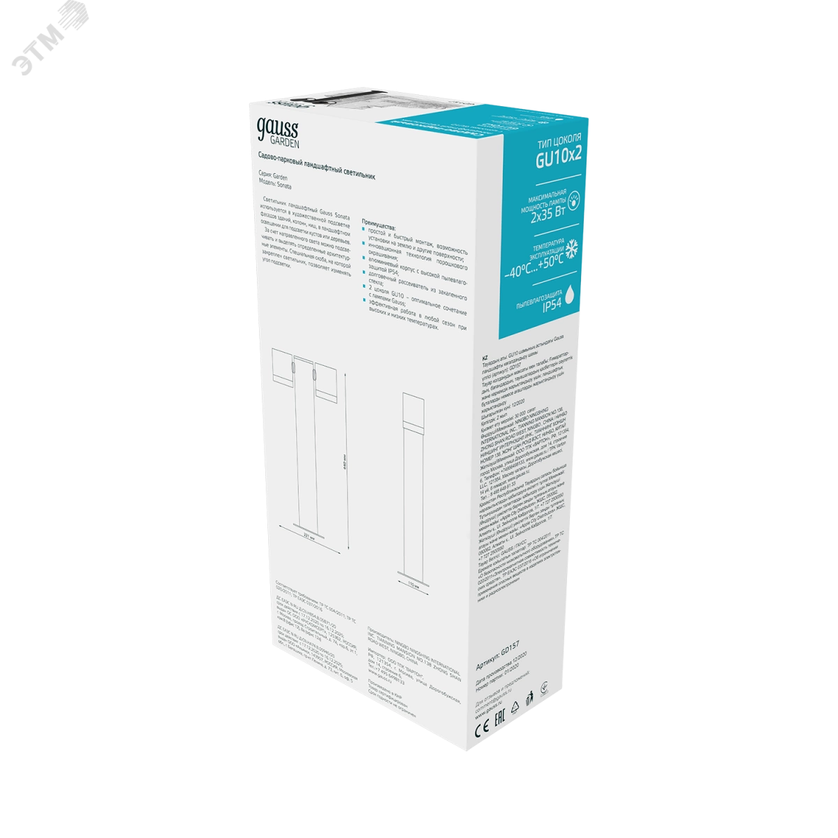 Светильник садово-парковый 35Вт (max) 2хGU10 ландшафтный столб 220-240 В 50Hz IP54 90х70х470 мм Sonata Gauss