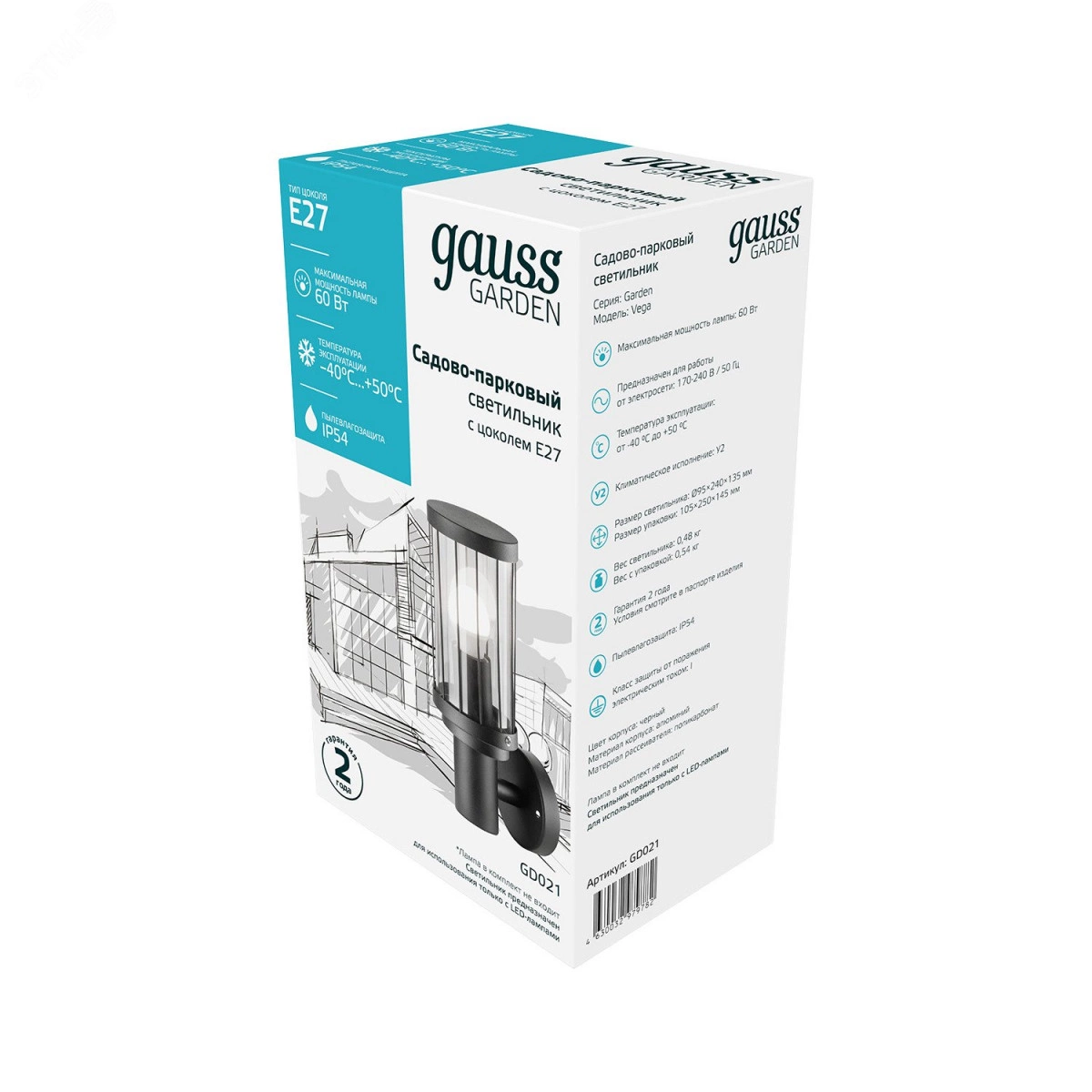 Садово-парковый светильник Gauss серии Vega с установкой на стену вверх-это стильная деталь вашей придомовой территории в стиле Loft! Светильники Vega, созданные в оригинальном современном стиле, отлично подойдут для общего и декоративного освещения фасадов загородных домов, террас, беседок ресторанов и кафе. Современный ландшафтный дизайн обязательно сочетает базовую и акцентную подсветку, для обеспечения которых прекрасно подойдут садово-парковые светильники Vega с мощностью 60 Вт. Помимо высокой пыле- и влагонепроницаемости IP54, светильники имеют устойчивость к погодным условиям от -40 до +50 градусов. Используйте садово-парковые светильники Gauss серии Vega с установкой на стену вверх для создания неповторимого стиля вашей придомовой территории.