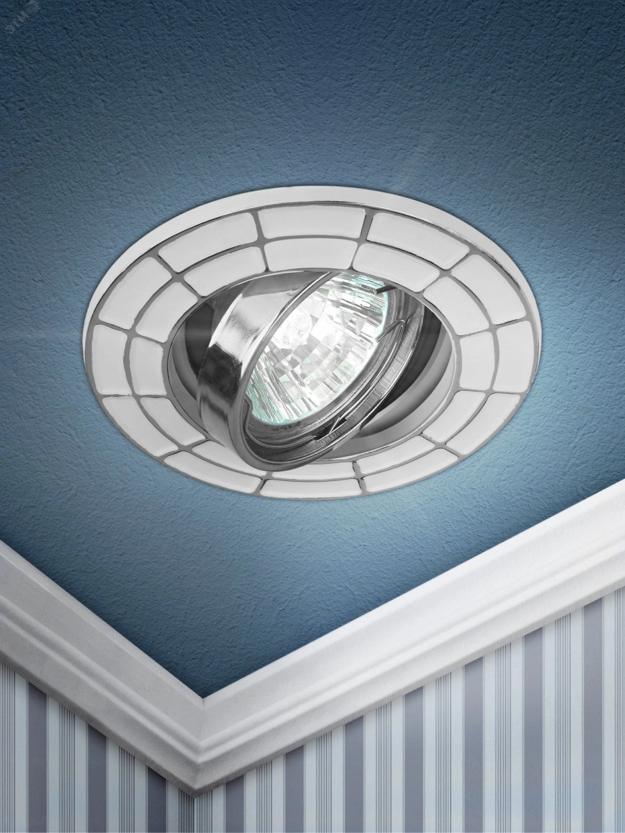 Светильник штампованный поворотный MR16,12V/220V, 50W белый/хром ST7A CH/WH
