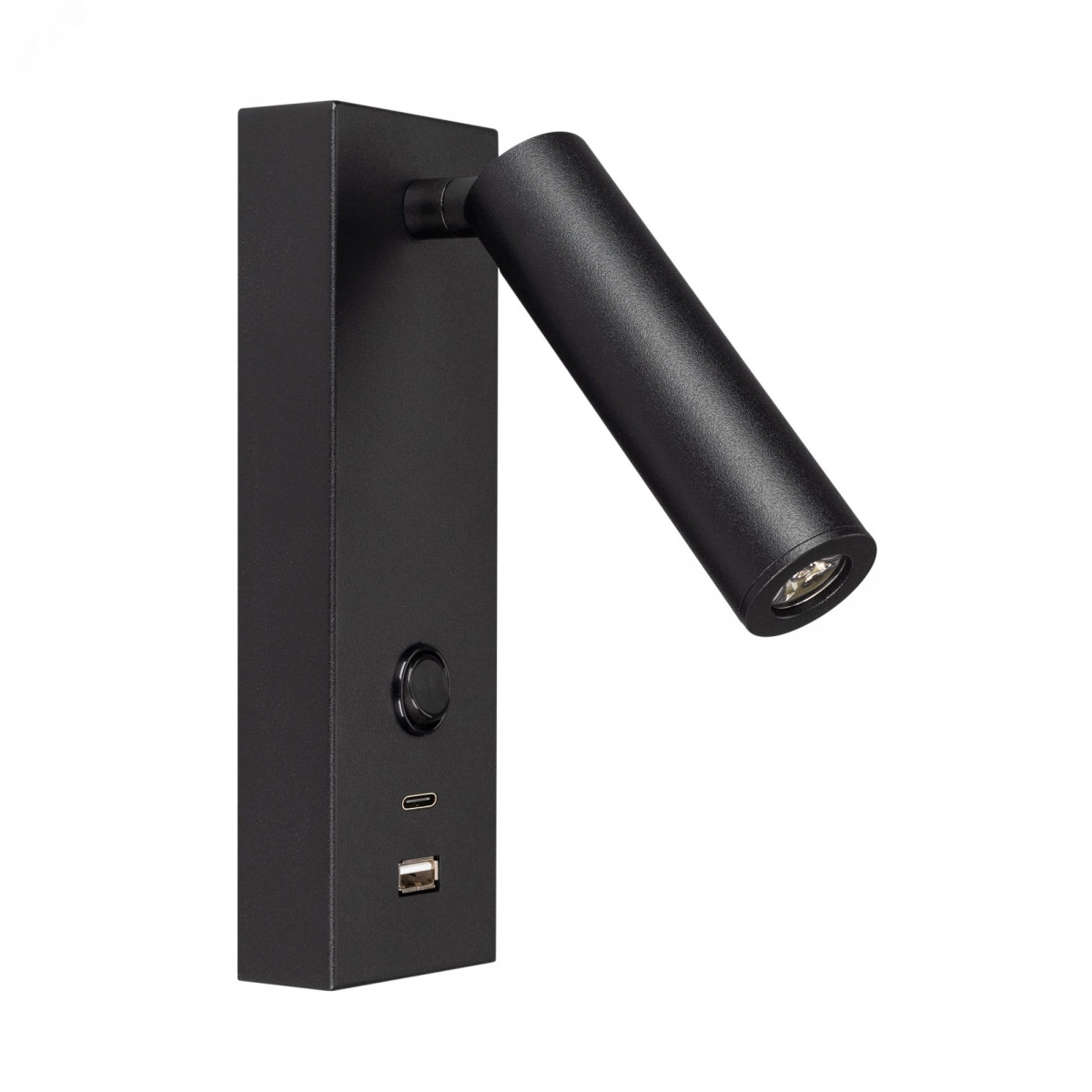 Светильник SP-BED-CHARGE-S60x125-3W Warm3000 (BK, 20 deg, 230V, USB-A, USB-C) (Arlight, IP20 Металл, 3 года)