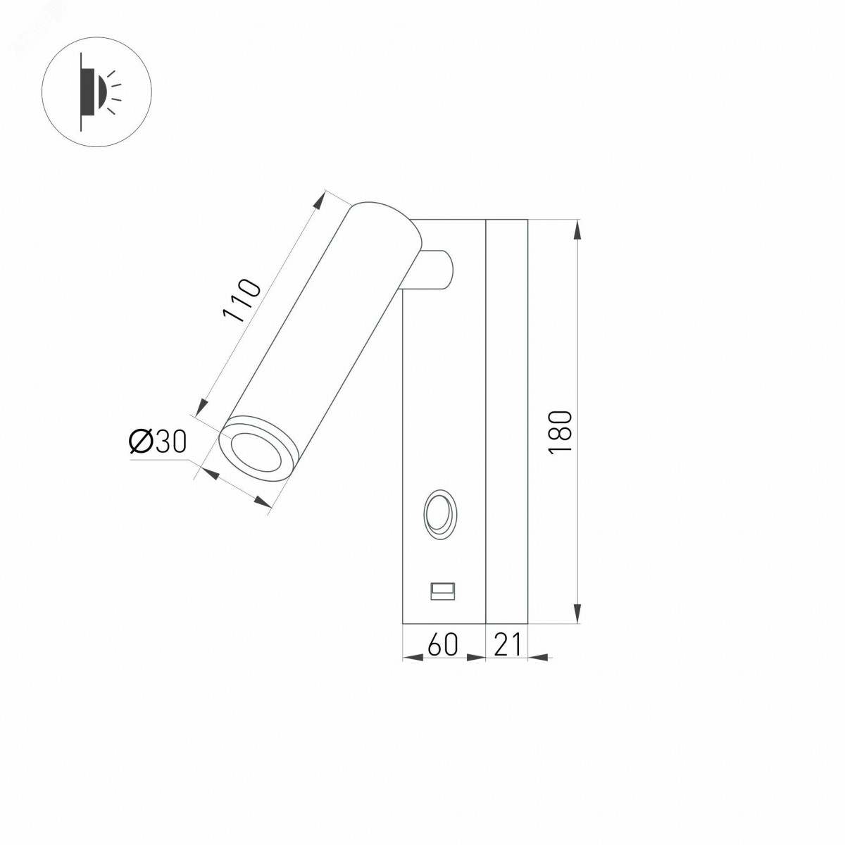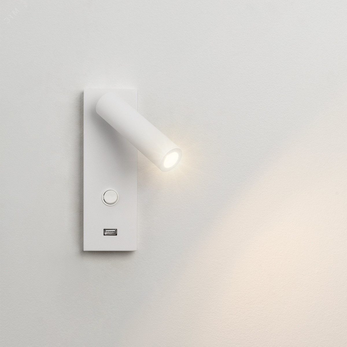 Накладной настенный светильник 3Вт, белый алюминиевый корпус. Цвет ТЕПЛЫЙ БЕЛЫЙ 3000K, св.поток 200лм, CRI(Ra)>80, угол 20 градусов . Размер Основание 180х60х21мм, Светоизлучатель 30110 мм. IP20. Питание AC220-240V, 3Вт, встроенный драйвер. Встроенный USB порт для зарядки.