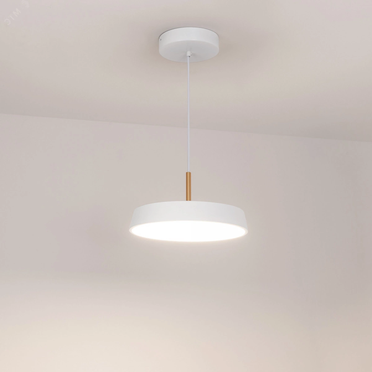 Подвесной светильник SP-ELEGANT-R300-17W Day4000 (WH, 120 deg, 230V) мощностью 17 Вт с дневным белым цветом свечения (4000 К) и индексом цветопередачи CRI 80 для освещения торговых, офисных, жилых и других помещений. Круглый корпус из стали на изящном подвесе длиной 1200 ммс золотистой декоративной вставкой будет уместно смотреться в любом интерьере. Световой поток 1258 лм и широкий уголизлучения 120 град. для создания основного освещения. Коэффициент пульсации менее 1 процентов гарантирует комфортное и приятное для глаз освещение без мерцания. Подвесной монтаж и удобная регулировка длины подвеса без специального инструмента. Компактный встроенный драйвер позволяет быстро и безопасно подключить светильник к сети переменного тока 230 В.