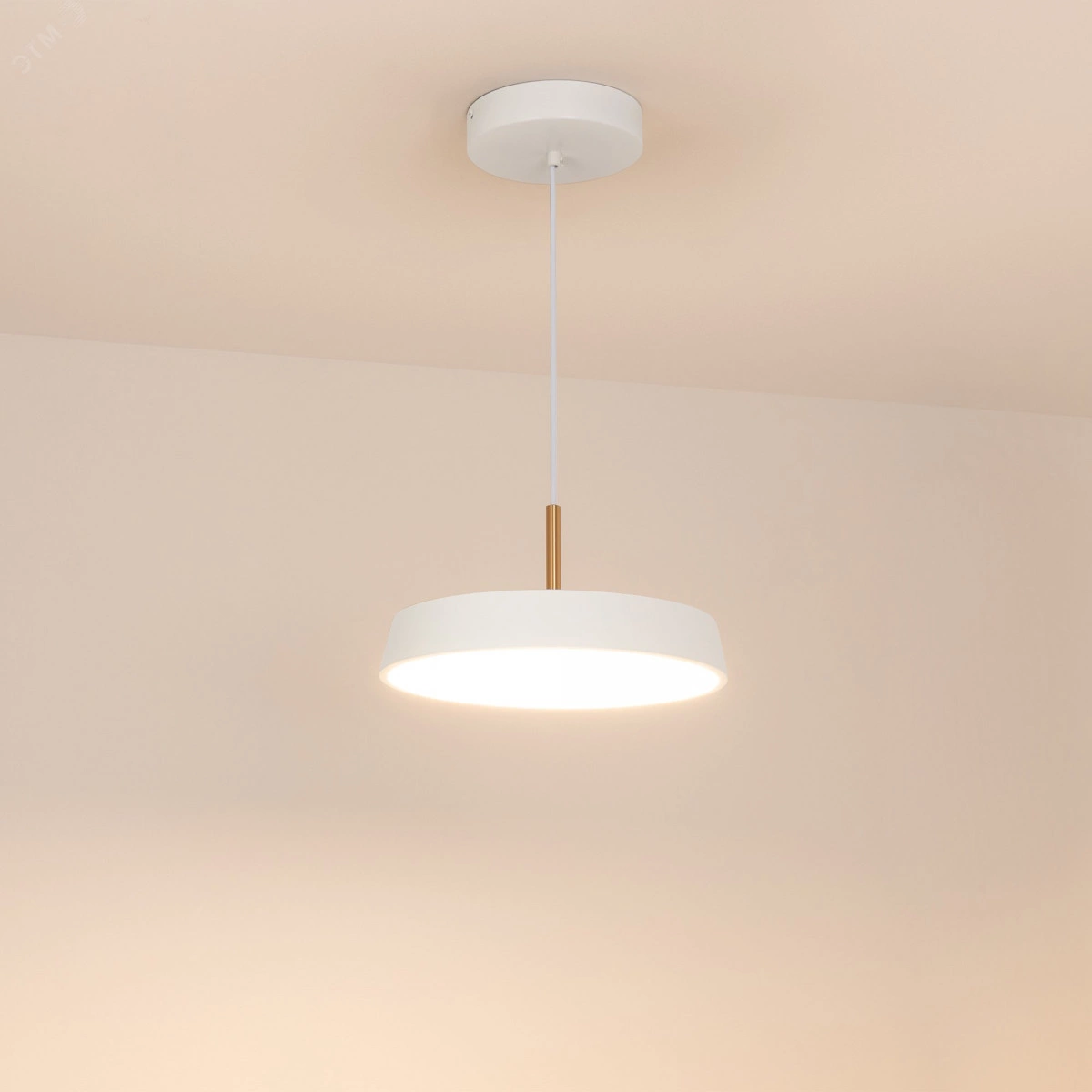 Подвесной светильник SP-ELEGANT-R300-17W Warm3000 (WH, 120 deg, 230V) мощностью 17 Вт с теплым белым цветом свечения (3000 К) и индексом цветопередачи CRI>80 для освещения торговых, офисных, жилых и других помещений. Круглый корпус из стали на изящном подвесе длиной 1200 мм с золотистой декоративной вставкой будет уместно смотреться в любом интерьере. Световой поток 1258 лм и широкий угол излучения 120 градусов для создания основного освещения. Коэффициент пульсации менее 1 процента гарантирует комфортное и приятное для глаз освещение без мерцания. Подвесной монтаж и удобная регулировка длины подвеса без специального инструмента. Компактный встроенный драйвер позволяет быстро и безопасно подключить светильник к сети переменного тока 230 В.