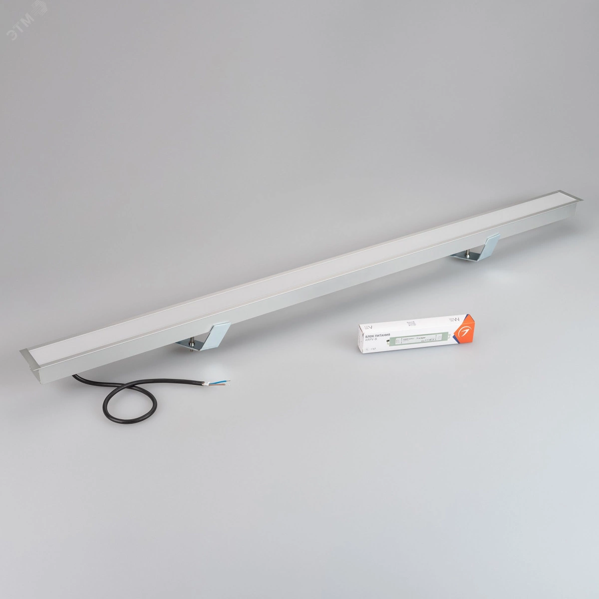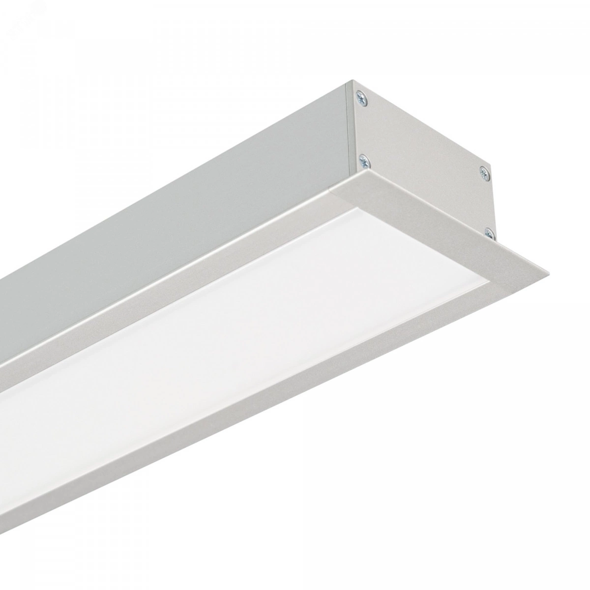 Светильник ЛИНИЯ из профиля с экраном SL-LINIA62-F-2500 ANOD+OPAL, свечение вниз, цвет Дневной 3887 K (Лента арт. 024420(2) в 4 ряда). Длина 1080 мм, сечение - 62x32 мм (с учетом фланцев). Способ установки - встраиваемый. Цвет корпуса - анодированный алюминий, серый матовый, класс защиты IP20. Световой поток 975, лм. Мощность 25,4 Вт, питание 230 В. В комплекте 1 шт блок питания арт.020004, внешний, без управления. Гарантия 36 мес. Поставка в сборе