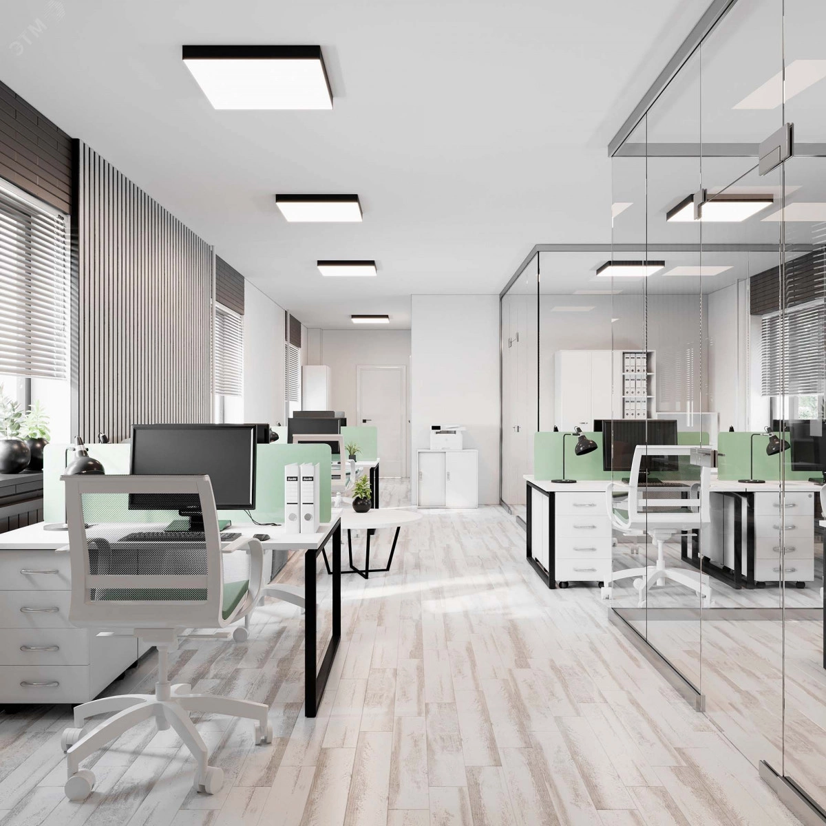 Накладной светильник. Мощность 30 Вт, св. поток 2000-2540 лм, 85 лм/Вт, теплый 3000 K, CRI-90, угол 120 градусов , напряжение питания 230 В. Белый квадратный корпус из алюминия, экран PC, степень защиты IP40. Размер - длина 350 мм, ширина 350 мм, высота 64 мм. Монтаж накладной. Драйвер 27-42 В, 800 мА, пульсация <5%.