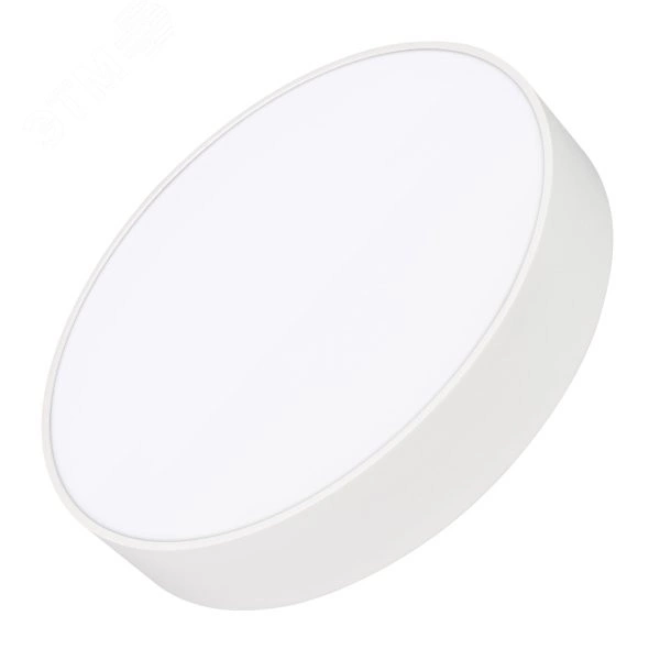 Накладной светильник. Мощность 30 Вт, св. поток 2850 лм, 90-100 лм/Вт, теплый 3000 K, CRI-90, угол 120 градусов , напряжение питания 230 В. Белый круглый корпус из алюминия, экран PC, степень защиты IP40. Размер - диаметр 350 мм, высота 64 мм. Монтаж накладной. Драйвер 27-42 В, 800 мА, пульсация <5%.