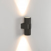 Настенный светильник со свечением в верхнюю и нижнюю полусферу. Мощность 2x6 Вт, св. поток 900 лм, 68 лм/Вт, теплый 3000 K, CRI-90, угол 40 градусов , напряжение питания 230 В. Черный фигурный корпус из алюминия, степень защиты IP20. Размер - длина 110 мм, ширина 72 мм, высота 180 мм. Монтаж накладной. Драйвер 27-42 В, 300 мА, пульсация <1%.