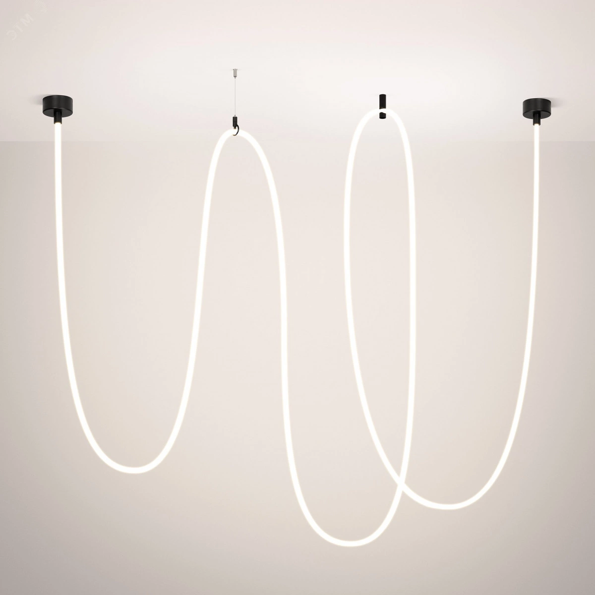 Подвесной светодиодный светильник SP-TROPIC-SURFACE-R18-L10000-110W Warm3000 (BK, 360 deg, 230V) мощностью 110 Вт с уникальным корпусом из гибкого неона диаметром 18 мм. Высокая световая эффективность 70 лм/Вт, индекс цветопередачи CRI>90, световой поток 5960 лм и сверх широкий угол излучения 360 градусов обеспечивают качественное освещение с точной передачей цветовых оттенков, что удовлетворяет требованиям большинства проектов. Силиконовый материал неона обеспечивает мягкое, равномерное освещение теплого белого цвета (3000 К). Тип монтажа - накладной. Гибкая форма, использование подвесов и креплений (приобретаются отдельно) позволяют воплотить разные идеи декоративного оформления. Корпус с защитой от пыли IP20 подходит для установки внутри помещений, где нет контакта с водой или другими жидкостями. Пульсация менее 5 процентов обеспечивает комфортное освещение без мерцания. Предназначен для основного и декоративного освещения в жилых, офисных, торговых помещениях и др.