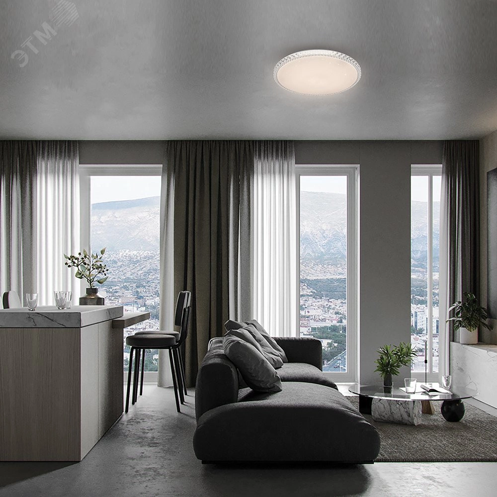 Светильник светодиодный ДБО-100w круглый матовый с эффектом Звездного неба регулировкой цветовой температуры 3000-6500К светового потока max 8500Лм и режима освещенности с пультом управления и таймером выключения
