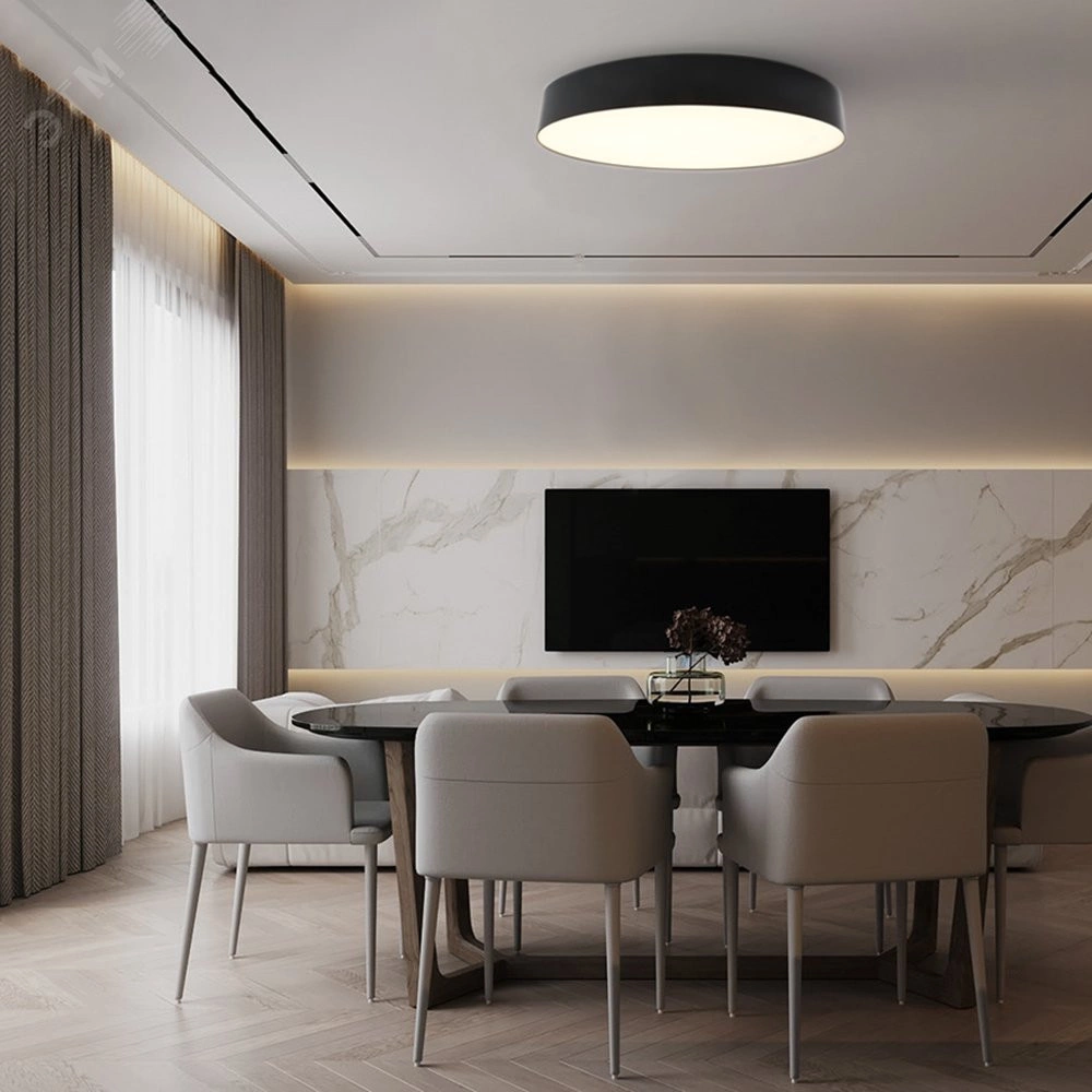 Стильное решение для квартиры и дома - матовый корпус и рассеиватель, мягкое распределения света по всей поверхности светильника. Мягкий кант защищает потолок от повреждений, а монтажные отверстия расположены максимально близко к центру (минимальный размер закладной - актуально для натяжных потолков.
