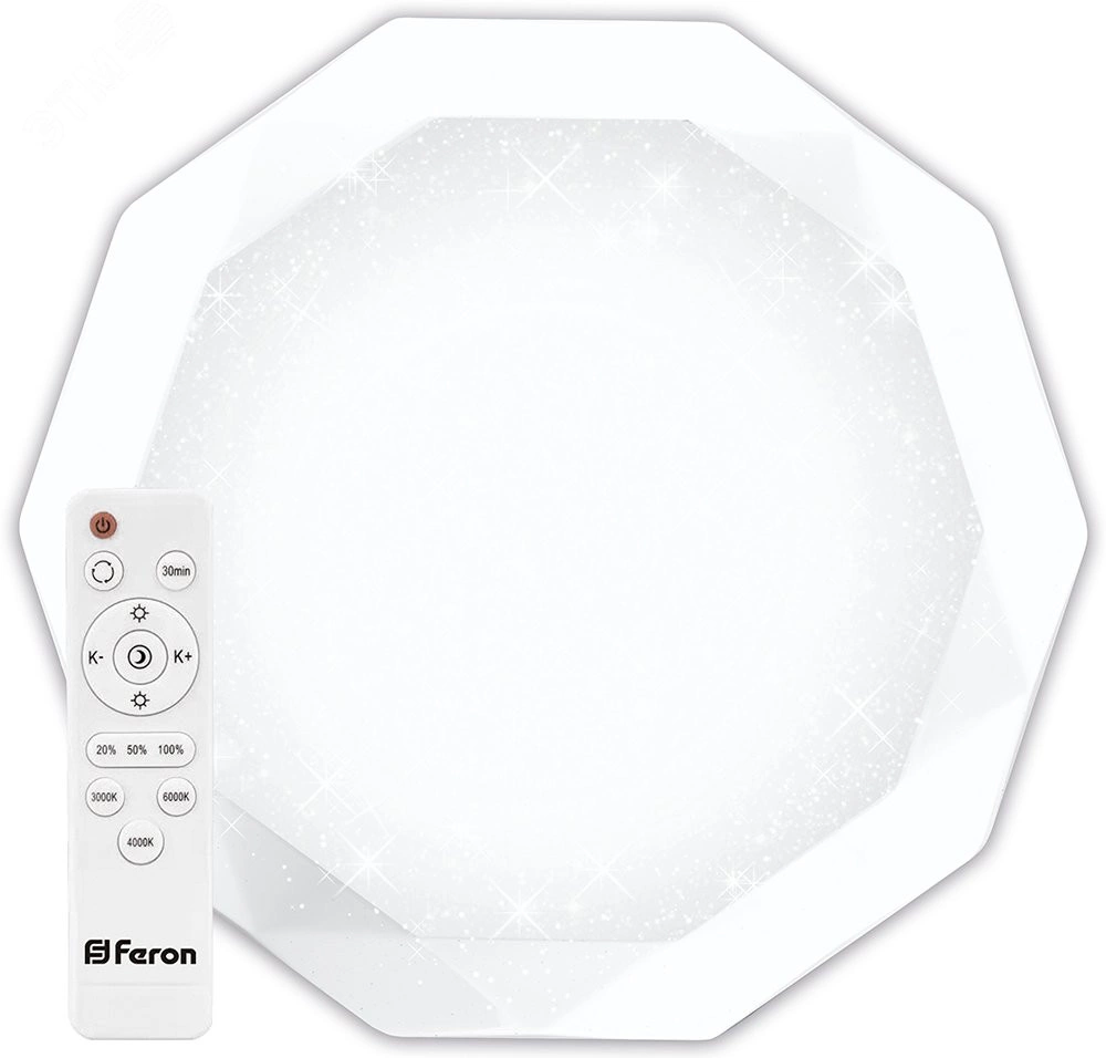 Светильник светодиодный ДБО-36w матовый с эффектом Звездного неба регулировкой цветовой температуры 3000-6500К светового потока max 2900Лм и режима освещенности с пультом управления и таймером выключения (AL5200)