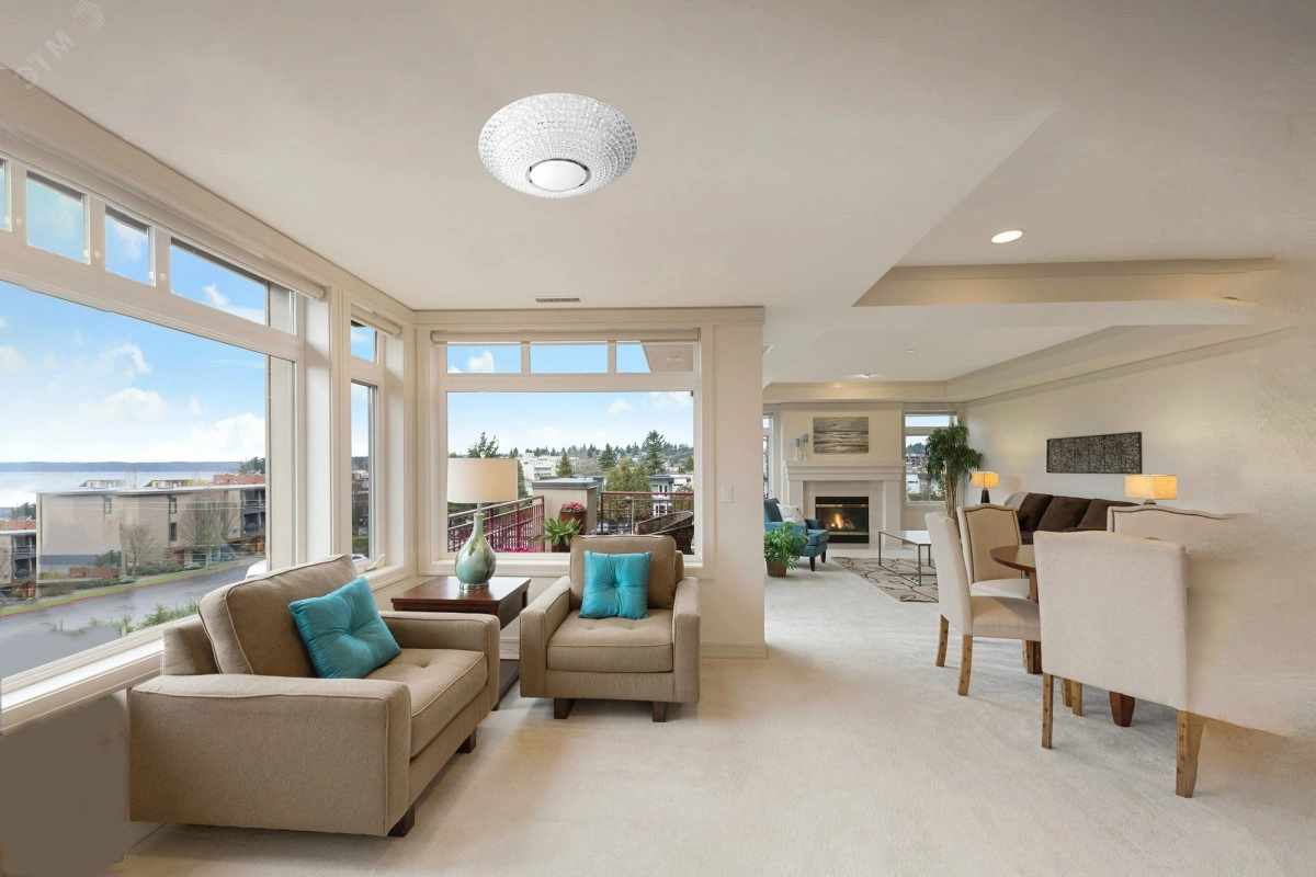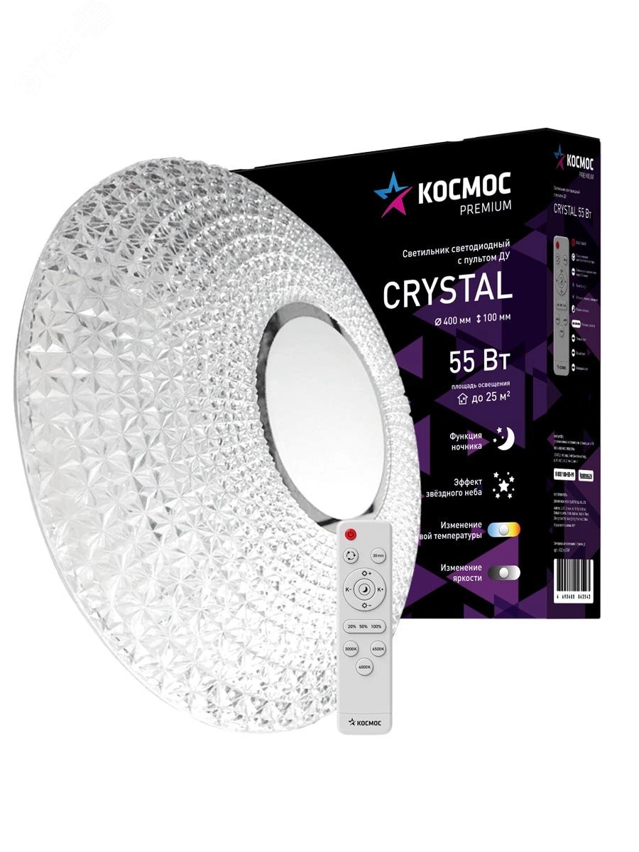 Светодиодный настенно-потолочный светильник Космос Premium Crystal - прекрасное решение для организации основного или дополнительного освещения офисных, торговых или жилых помещений. Современный дизайн и легкий акцент на роскошь. Регулировка цветовой температуры и мощности светового потока от 10 до 100% позволяет моделировать освещение по вашему вкусу. Имеется функция ночника. Доступны светильники с 2-я различными уровнями мощности для различных помещений, 55/75 Вт.