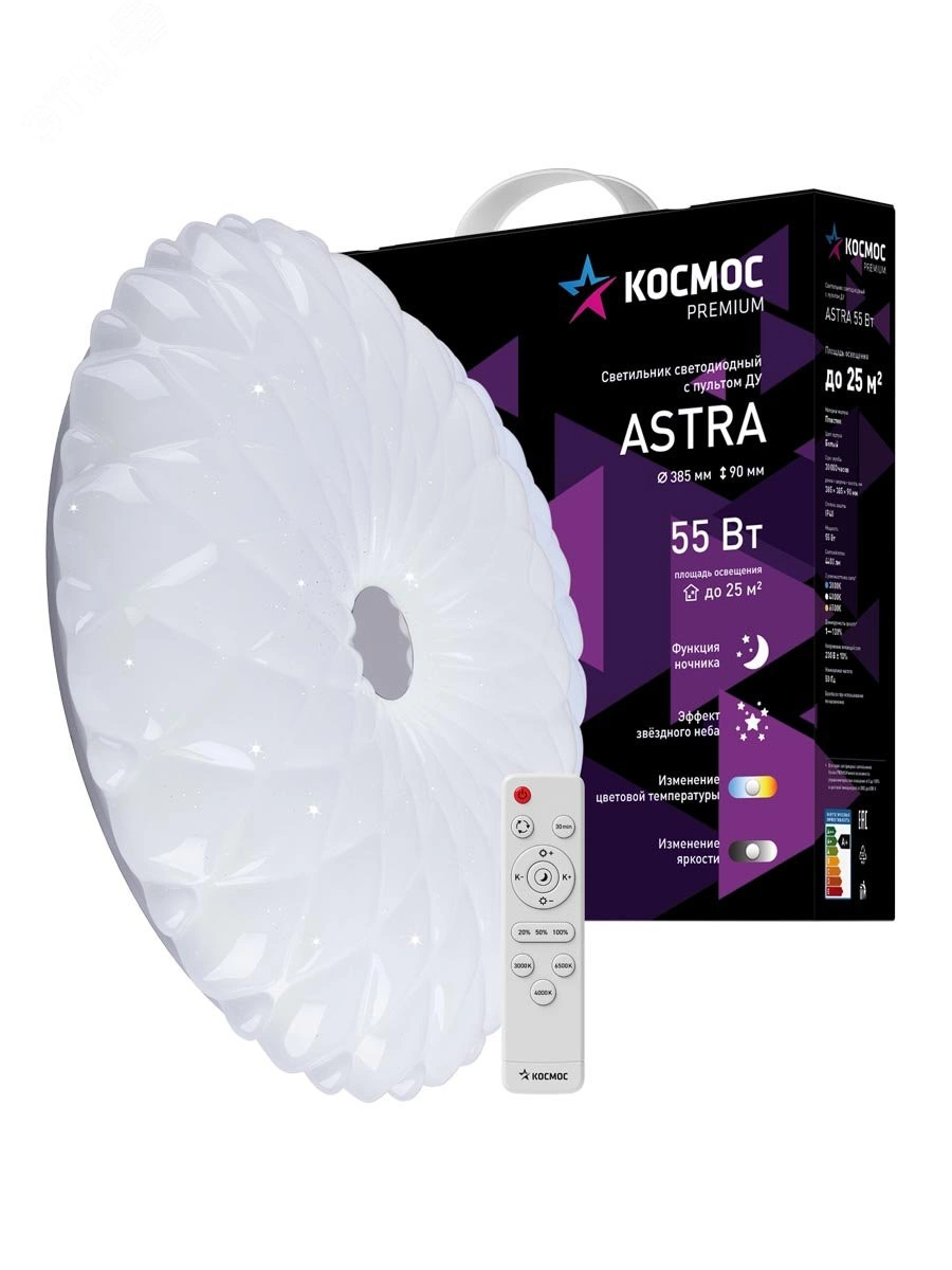 Светодиодный настенно-потолочный светильник Космос Premium Astra - прекрасное решение для организации основного или дополнительного освещения офисных, торговых или жилых помещений. Минималистичный эко дизайн напоминающий цветок. Регулировка цветовой температуры и мощности светового потока от 10 до 100% позволяет моделировать освещение по вашему вкусу. Имеется функция ночника. Доступны светильники с 3-я различными уровнями мощности для различных помещений, 55/75/120 Вт.
