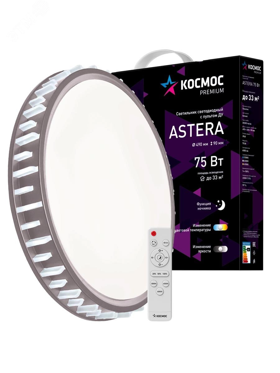 Светодиодный настенно-потолочный светильник Космос Premium Astera - прекрасное решение для организации основного или дополнительного освещения офисных, торговых или жилых помещений. Современная классика с нотками Востока. Регулировка цветовой температуры и мощности светового потока от 10 до 100% позволяет моделировать освещение по вашему вкусу. Имеется функция ночника.