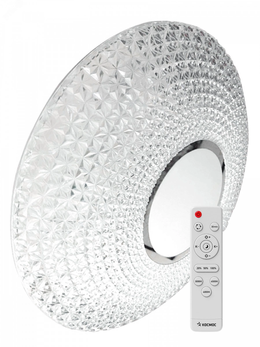 Светодиодный настенно-потолочный светильник Космос Premium Crystal - прекрасное решение для организации основного или дополнительного освещения офисных, торговых или жилых помещений. Современный дизайн и легкий акцент на роскошь. Регулировка цветовой температуры и мощности светового потока от 10 до 100% позволяет моделировать освещение по вашему вкусу. Имеется функция ночника. Доступны светильники с 2-я различными уровнями мощности для различных помещений, 55/75 Вт.