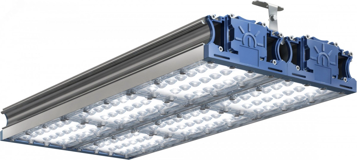 Светодиодный светильник предназначен для внутрипромышленного освещения зданий, навесов, автомобильных и железнодорожных тоннелей, открытых территорий общего назначения, для установки на подвес или монтажную поверхность. Установлен драйвер управляющего устройства использующийся по цепи +DIM и –DIM. Регулирование выходного тока осуществляется изменением напряжения на выводе +DIM относительно –DIM в пределах 0 – 10 вольт (допускается подача до 12 вольт). Вывод +10V используется при регулировании с помощью переменного резистора или ШИМ, а так же позволяет включить драйвер на полную мощность без дополнительных схем.