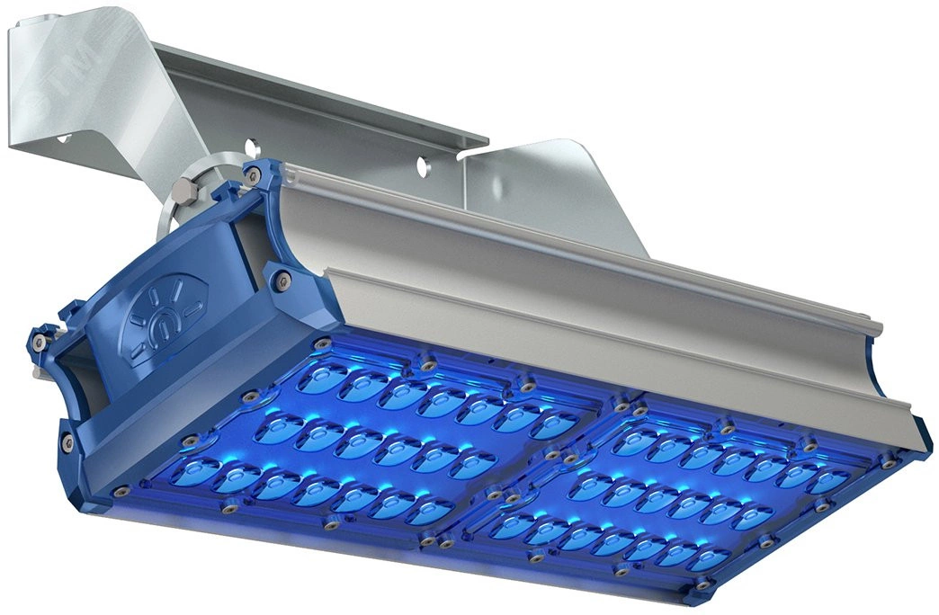 Светодиодный светильник предназначен для промышленного освещения зданий для установки на подвес или монтажную поверхность посредством поворотного кронштейна типа 'скоба' с возможностью регулирования угла направления светового потока в диапазоне 0- 180 градусов для светодиодных светильников мощностью от 50 до 100 Вт включительно, а для светодиодных светильников мощностью от 150 до 400 Вт диапазоне 35 – 140 градусов.