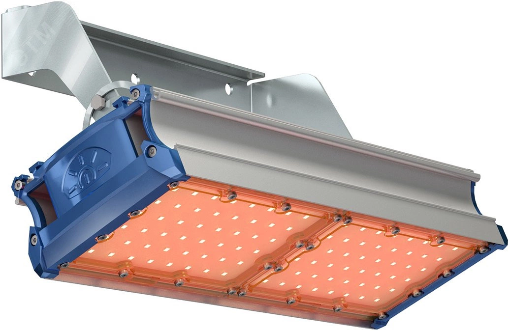 Светодиодный светильник предназначен для промышленного освещения зданий для установки на подвес или монтажную поверхность посредством поворотного кронштейна типа 'скоба' с возможностью регулирования угла направления светового потока в диапазоне 0- 180 градусов для светодиодных светильников мощностью от 50 до 100 Вт включительно, а для светодиодных светильников мощностью от 150 до 400 Вт диапазоне 35 – 140 градусов.