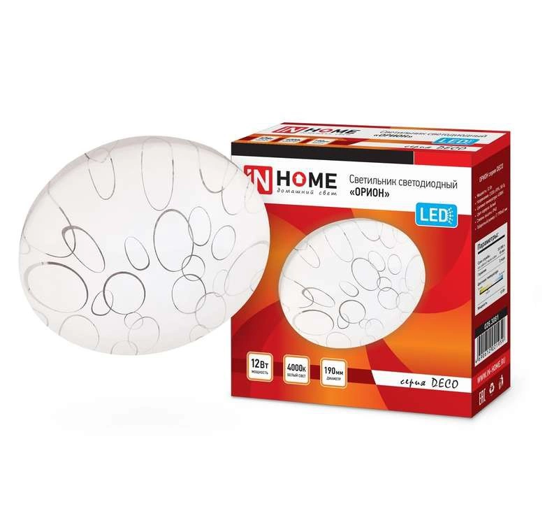 Полное описание: Светильник светодиодный DECO 12Вт 230В 4000К 780лм 190мм ОРИОН IN HOME 4690612021959