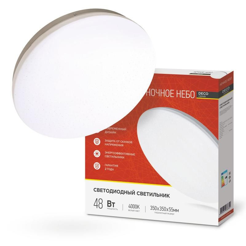 Полное описание: Светильник светодиодный DECO 48Вт 230В 4000К 3120лм 350х55мм НОЧНОЕ НЕБО IN HOME 4690612038650