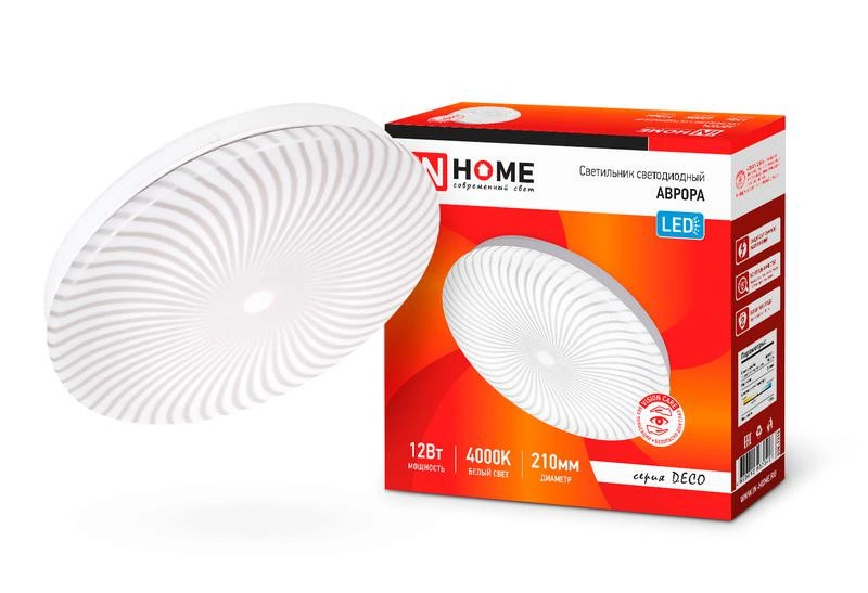 Полное описание: Светильник светодиодный DECO АВРОРА 12Вт 230В 4000К 780лм 210х50мм IN HOME 4690612037349
