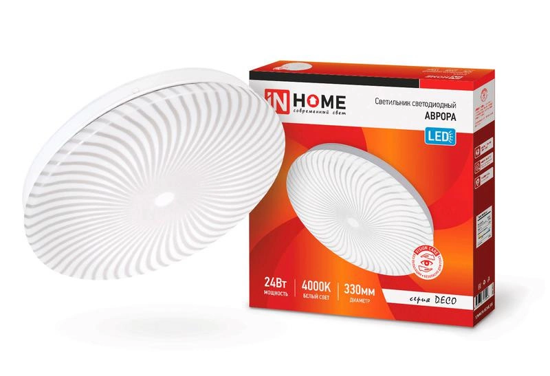 Полное описание: Светильник светодиодный DECO АВРОРА 24Вт 230В 4000К 1560лм 330х50мм IN HOME 4690612037387