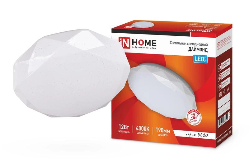 Светильник светодиодный DECO ДАЙМОНД 12Вт 230В 4000К 780лм 190мм IN HOME 4690612033594
