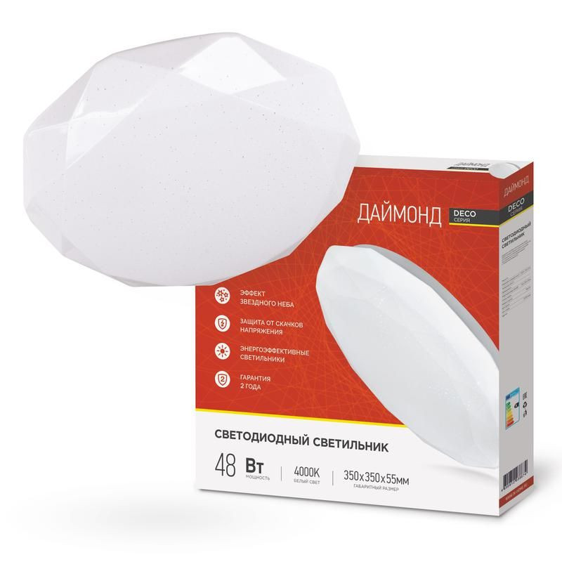 Полное описание: Светильник светодиодный DECO ДАЙМОНД 48Вт 230В 4000К 3120лм 377х73мм IN HOME 4690612038674