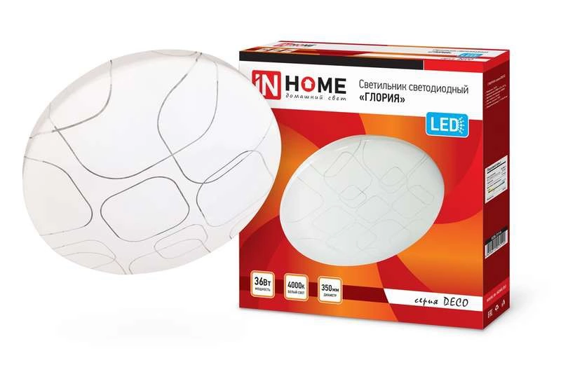 Полное описание: Светильник светодиодный DECO ГЛОРИЯ 36Вт 230В 4000К 2340лм 350мм IN HOME 4690612025100