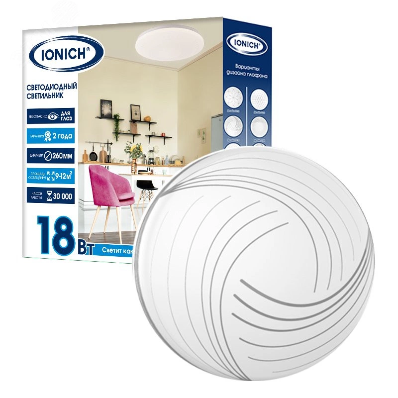 Светильник светодиодный декоративный ДБО 18Вт 1260Лм 230В 6500К IP20 IONICH