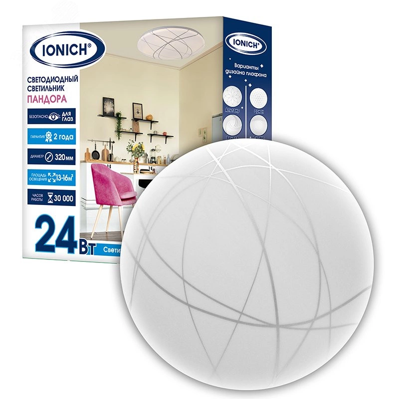 Светильник светодиодный декоративный ДБО 24Вт 1680Лм 230В 4000К IP20 IONICH