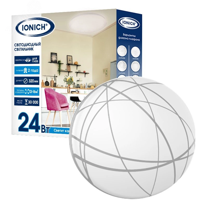 Светильник светодиодный декоративный ДБО 24Вт 1680Лм 230В 6500К IP20 IONICH