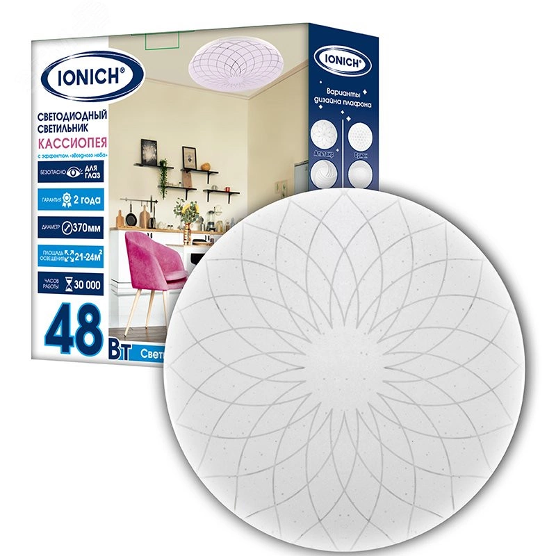 "Светильник светодиодный декоративный ДВО IONICH серия 2217 ""Кассиопея"" эффект ""Звездное небо"" 48 Вт 3300 Лм 230 В 6500 К 350 мм IP20"