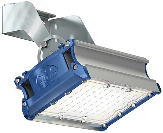 Светодиодный светильник предназначен для промышленного освещения зданий для установки на подвес или монтажную поверхность посредством поворотного кронштейна типа 'скоба' с возможностью регулирования угла направления светового потока в диапазоне 0- 180 градусов для светодиодных светильников мощностью от 50 до 100 Вт включительно, а для светодиодных светильников мощностью от 150 до 400 Вт диапазоне 35 – 140 градусов.