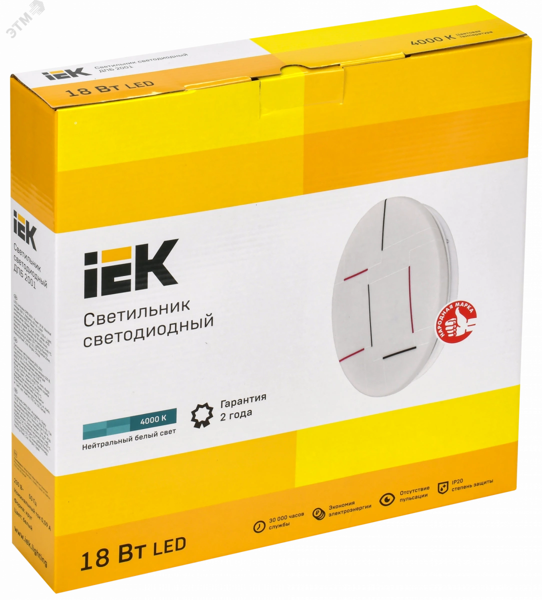 Светильник светодиодный ДПБ 2001 18Вт IP20 4000К круг белый IEK