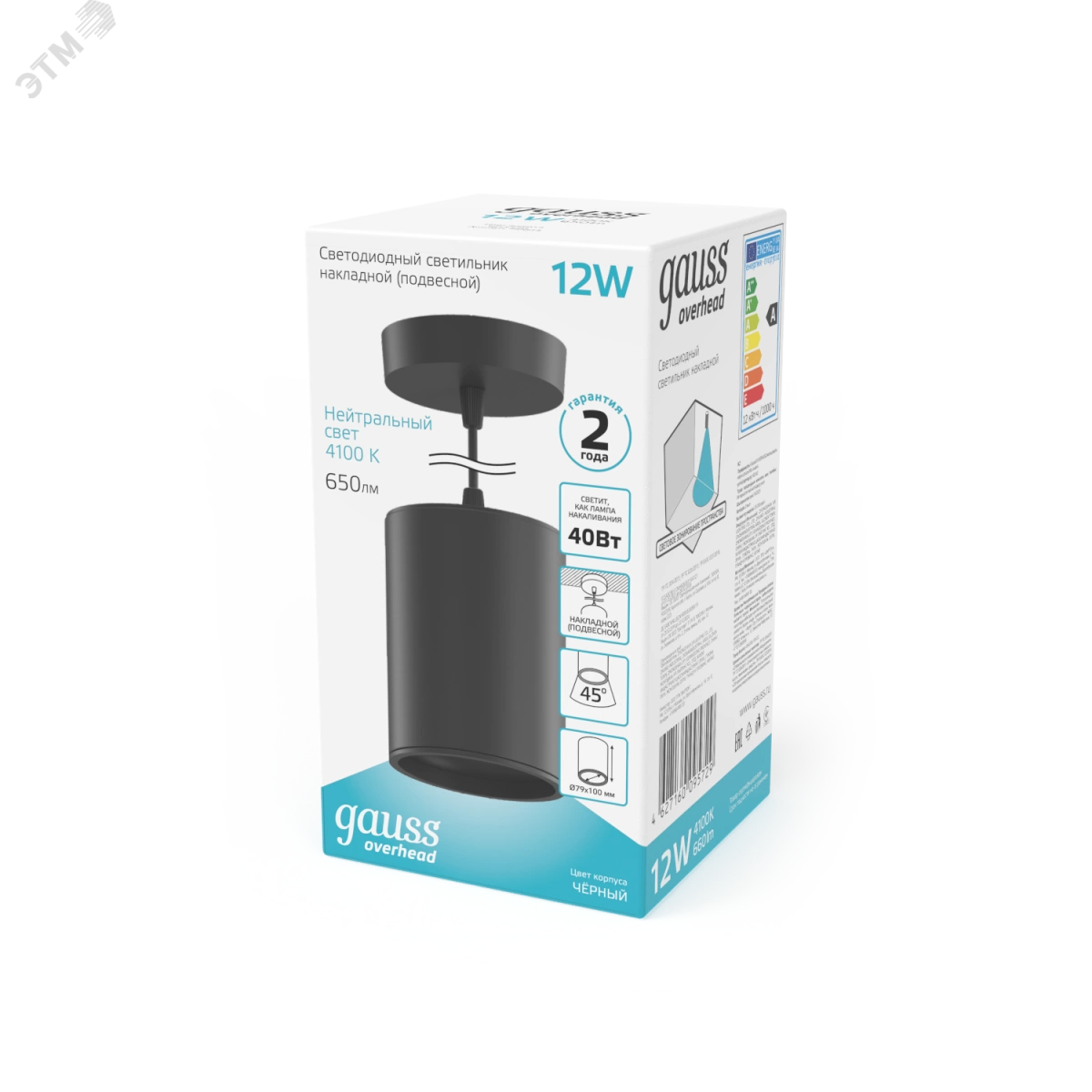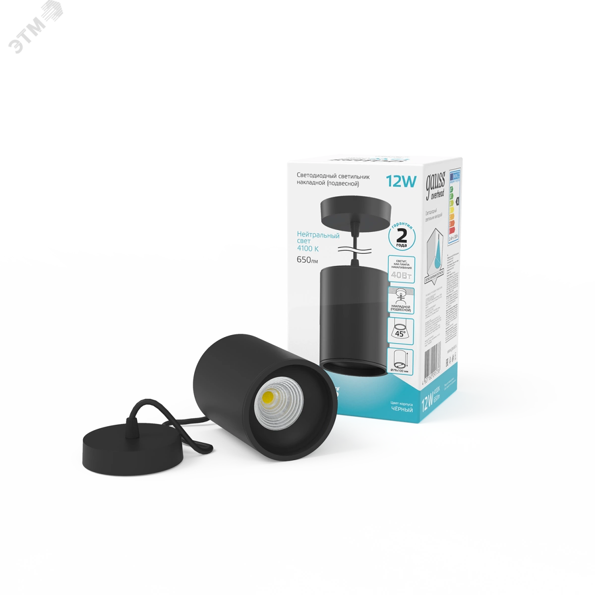 Светильник светодиодный ДПО 12 Вт 650 Лм 4100К цилинндр на подвесе 170-240 В 79х100 мм IP20 черный LED Overhead Gauss