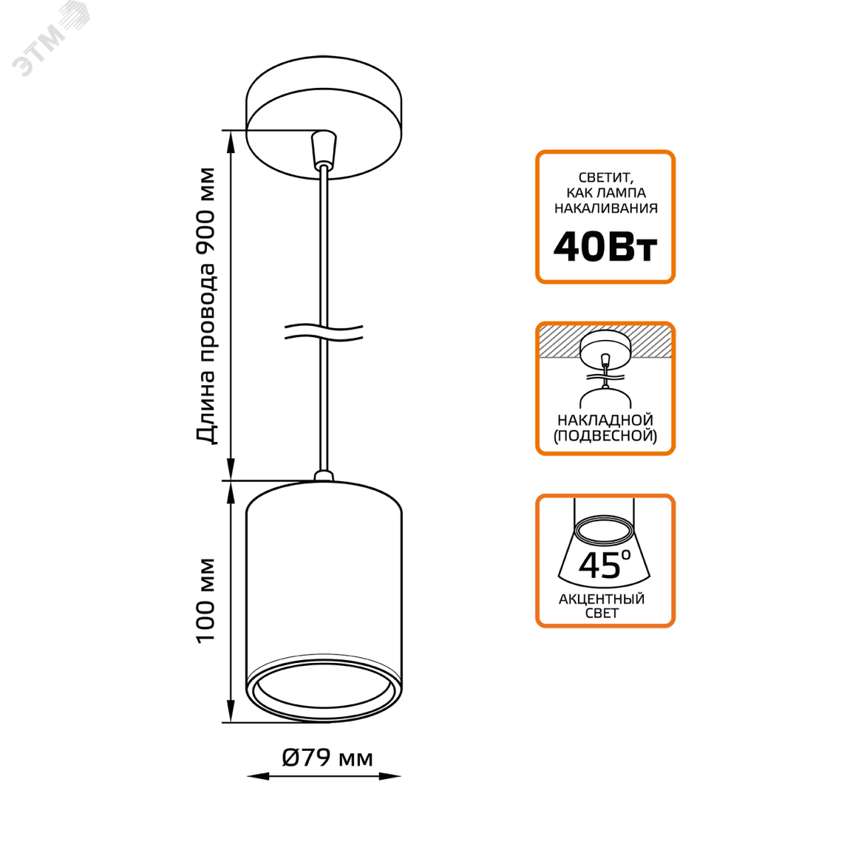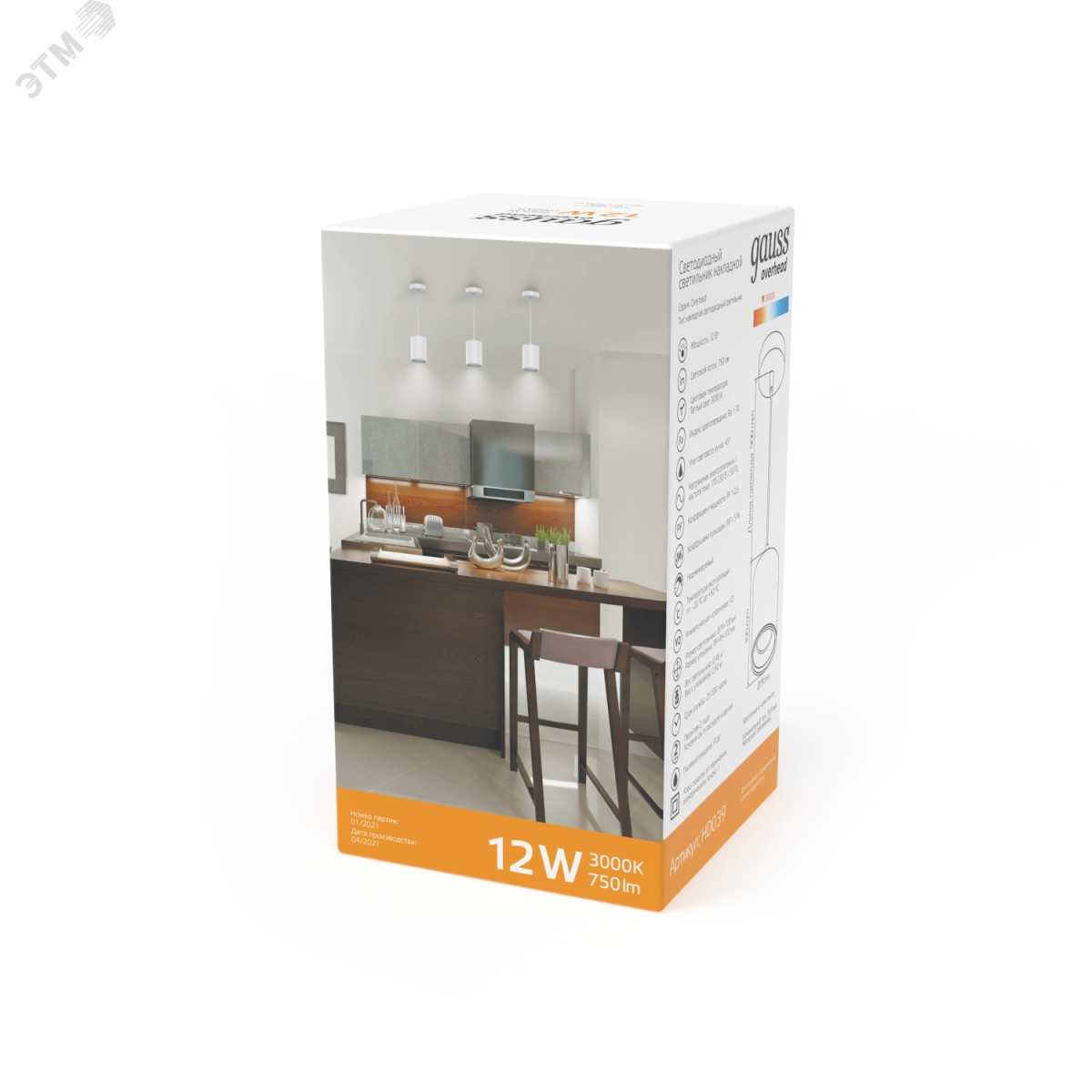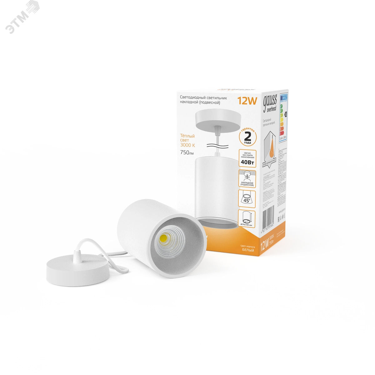 Светильник светодиодный ДПО 12 Вт 750 Лм 3000К цилинндр на подвесе 170-240 В 79х100 мм IP20 белый LED Overhead Gauss