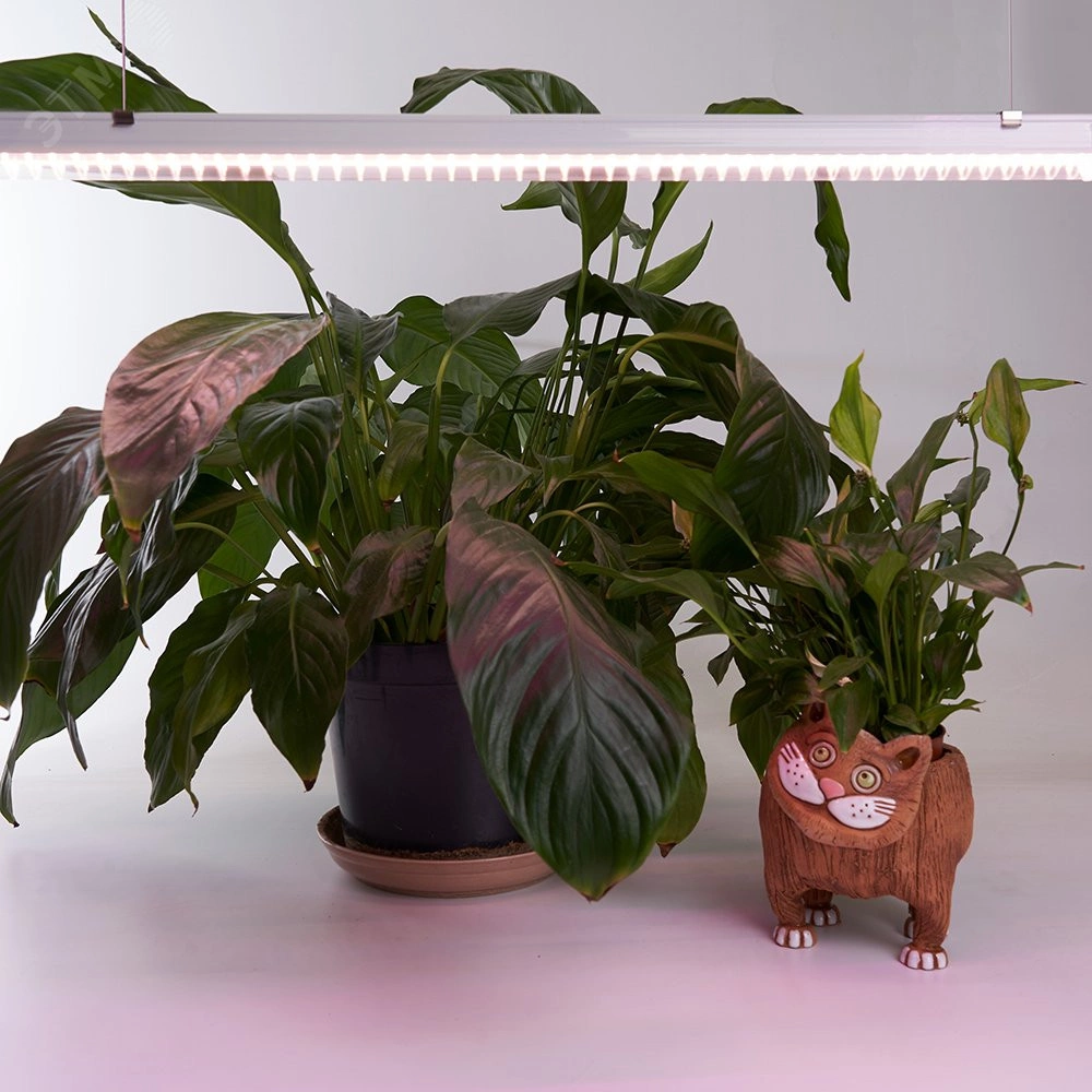 Светодиодные линейные светильники для растений. Красно-синий цвет спектра наиболее благоприятен для фотосинтеза и стимулирует рост растений, ускоряя цветение и созревание плодов. На корпусе светильника есть выключатель. Широко применяются в квартирах и дачных парниках для выращивания овощей и зелени.