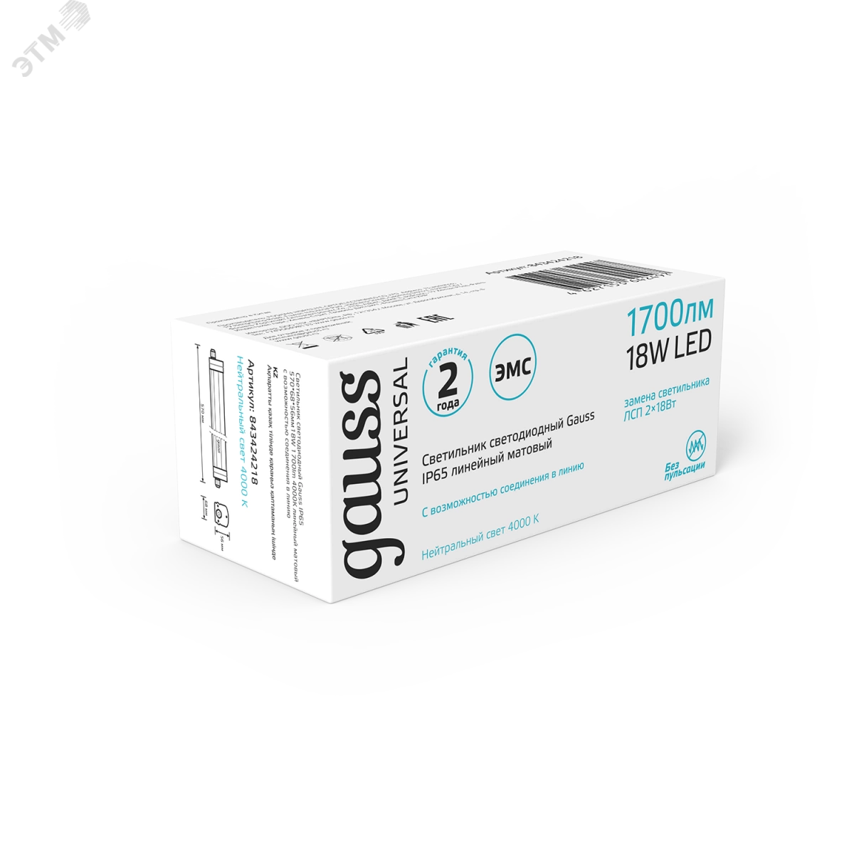 Светильник светодиодный ДСП-18 Вт 1700 Лм 4000K IP65 570х60х55 мм матовый соединение в линию UNIVERSAL Gauss