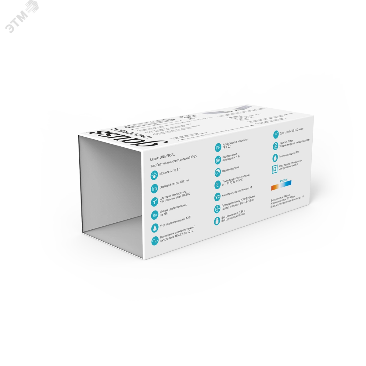 Светильники ЛСП IP65 Universal с цветовой температурой 4000К и 6500К предназначены для освещения автомоек, парковок, подсобных помещений, пешеходных переходов и лестничных пролетов, и других помещений, где требуется высокий уровень защиты от пыли и влаги IP65. Особенностью данной серии является возможность подключения светильников в линию до 20шт. Эта функция снимает необходимость подводить кабель питания 220В к каждому светильнику, что значительно ускоряет монтаж и снижает издержки на материалах и оплате услуг электромонтажников. Качественные светодиоды Sanan с эффективностью до 90 лм/В и широкий диапазон рабочих температур -40 + 45 градусов по Цельсию позволяет использовать серию Universal в профессиональном сегменте, где требуются Светильники с высокой светоотдачей и стойкие к внешним факторам окружающей среды.