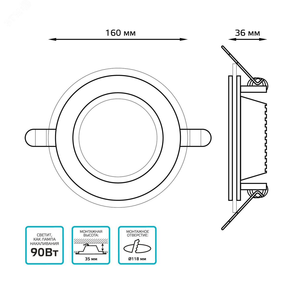 • Монтажный диаметр, мм