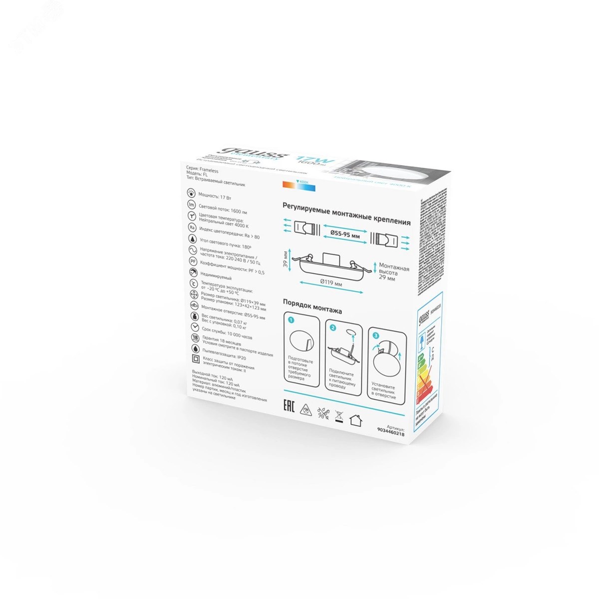 Светильник светодиодный ДВО 17 Вт 4000К 1600 лм 220-240В IP20 D119х29мм монт d95мм Алюминий безрамочный Elementary Gauss