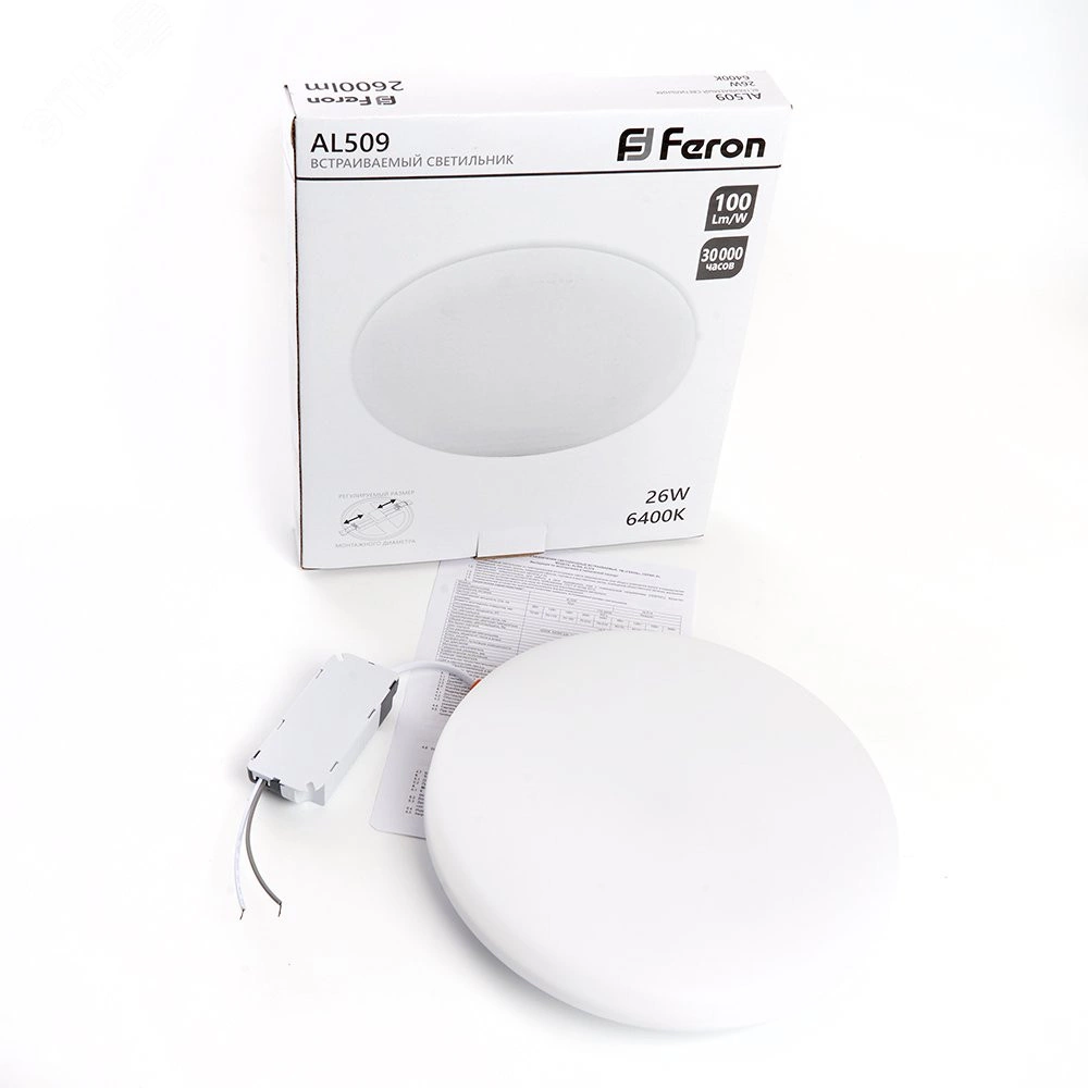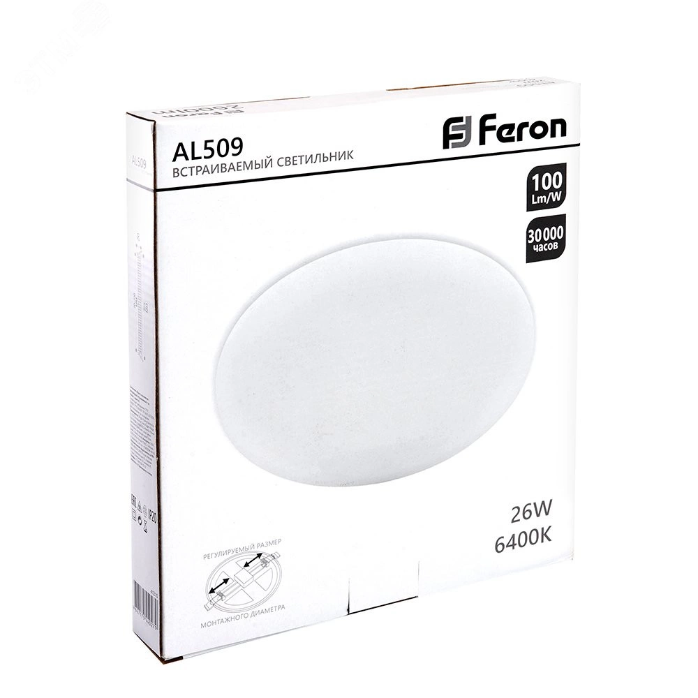 Светильник светодиодный ДВО-26w 6400К 2600Лм slim белый с регулируемым монтажным диаметром (до 170мм)