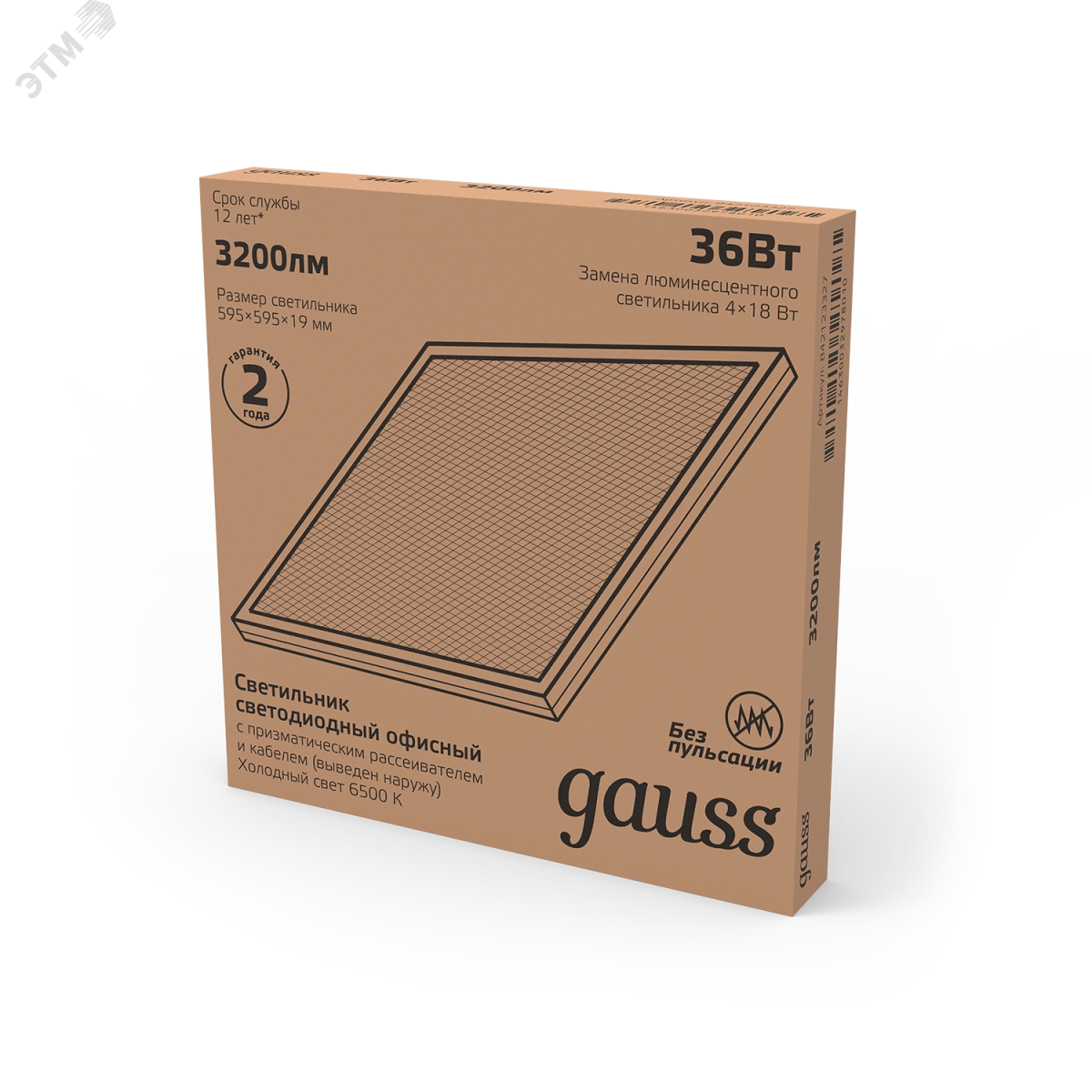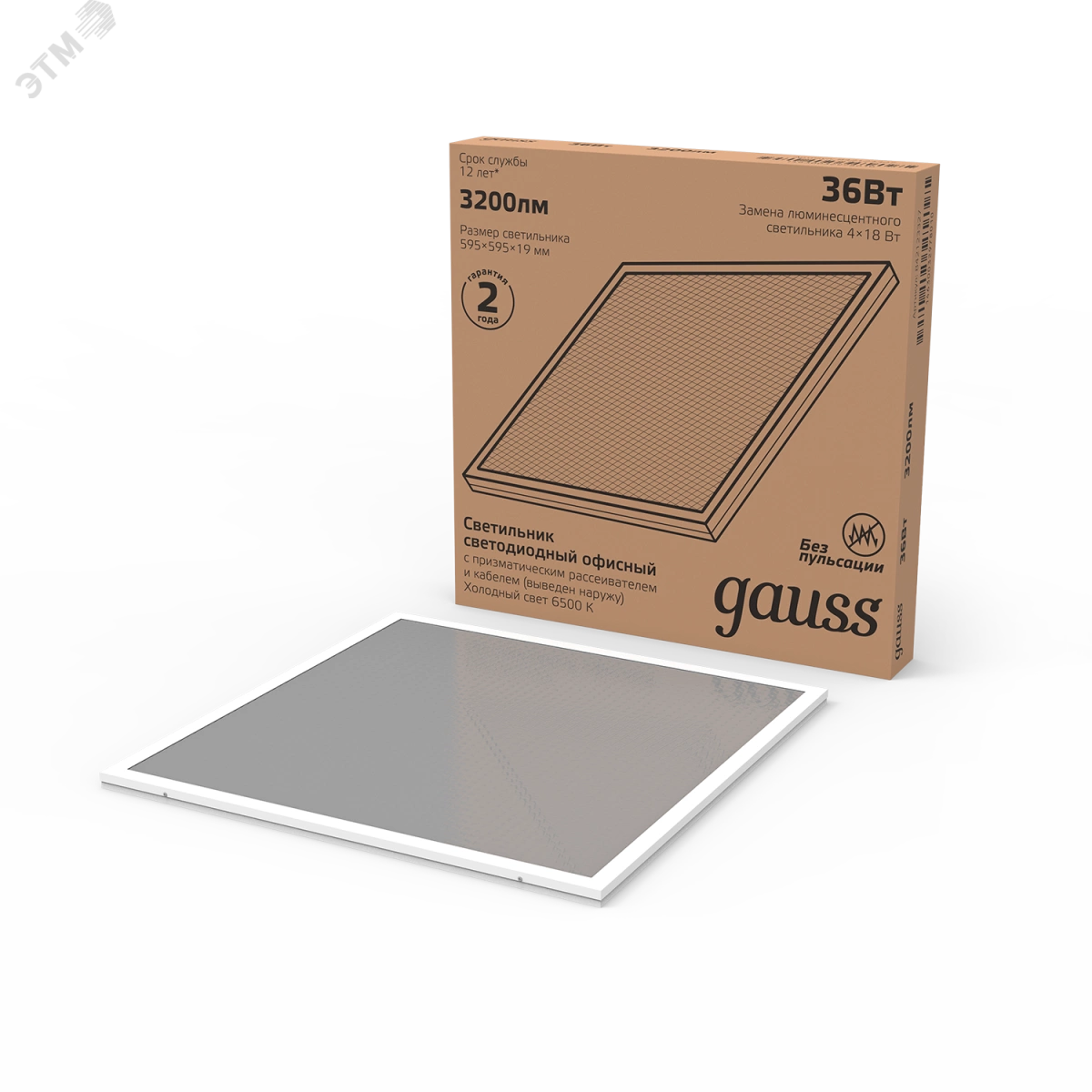 Светильник светодиодный ДВО-36 Вт 2950 Лм 6500K призма IP20 595х595х19 мм с выводом кабеля Gauss