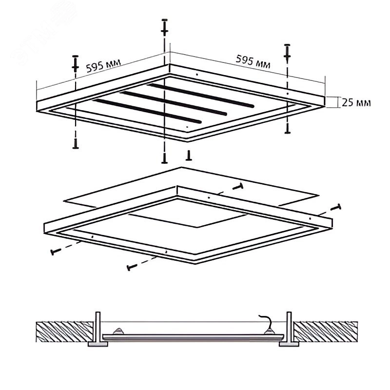 Полное описание: Светильник светодиодный ДВО-36w 588*588*19 5000K опаловый Грильято IP40