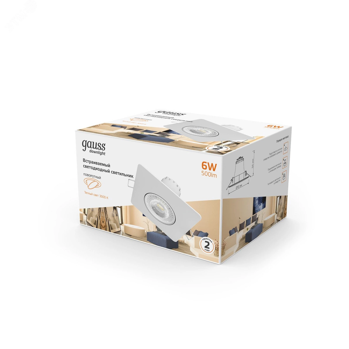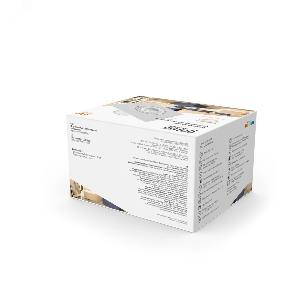 Светильник светодиодный ДВО 6 Вт 3000К 500 лм 175-240В IP20 90х90х56мм монт разм 65х65мм Алюминий Downlight Gauss