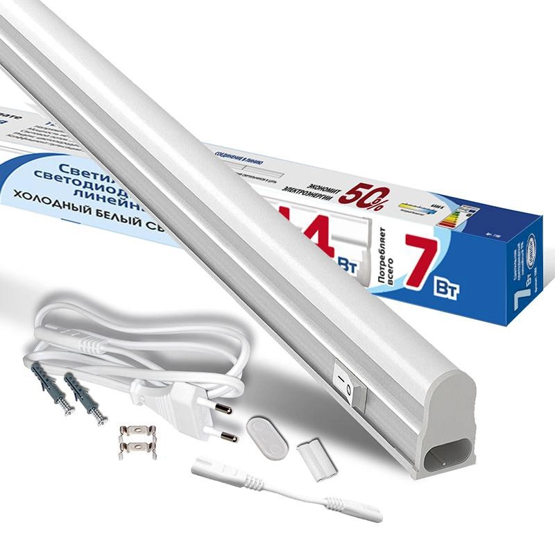 Полное описание: Светильник светодиодный ILED-COCB-СПБТ5-600-7-630-230-6.5-IP40 7Вт 6500К IP40 630лм 230В 600мм СПБ Т5 линейный IONICH 1568