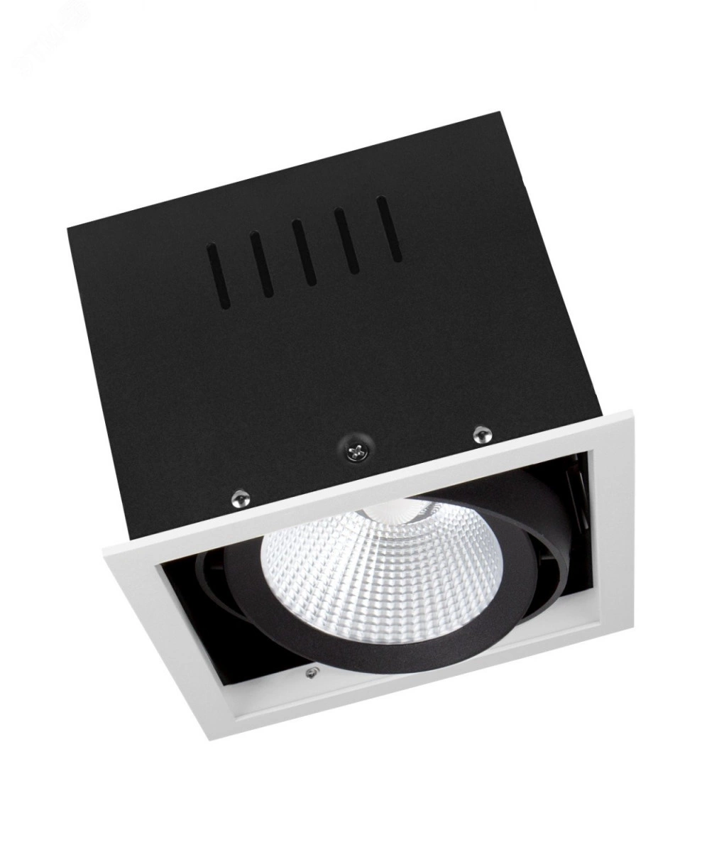 Поворотный встраиваемый светодиодный светильник LEDVANCE SPOT MULTI мощностью 30 Вт в алюминиевом карданном корпусе, состоящий из одного светодиодного модуля. Световой поток 2700 лм, цвет свечения - теплый белый (цветовая температура - 3000 К). Габариты - 173 х 173 х 135 мм. Угол раскрытия светового пучка- 38 градусов благодаря специально сконструированному фасеточному отражателю. Угол регулировки карданного подвеса - +/- 25 градусов. Цвет корпуса - черный, цвет рамки- белый. Светильник характеризуется очень хорошей световой отдачей и высоким качеством света (стандартное отклонение эллипса соответствия меньше или равно 4 sdcm), а также простой заменой внешнего драйвера благодаря вилке с байонетным зажимом. Подходит для акцентного освещения торговых зон, вестибюлей, холлов, ресторанов, гостиниц, шоурумов.