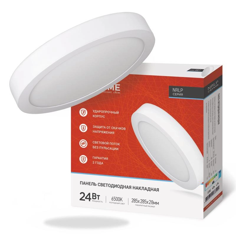 Полное описание: Светильник светодиодный круглый накладной NRLP 24Вт 230В 6500К 1680лм 285мм IP40 бел. панель IN HOME 4690612038544