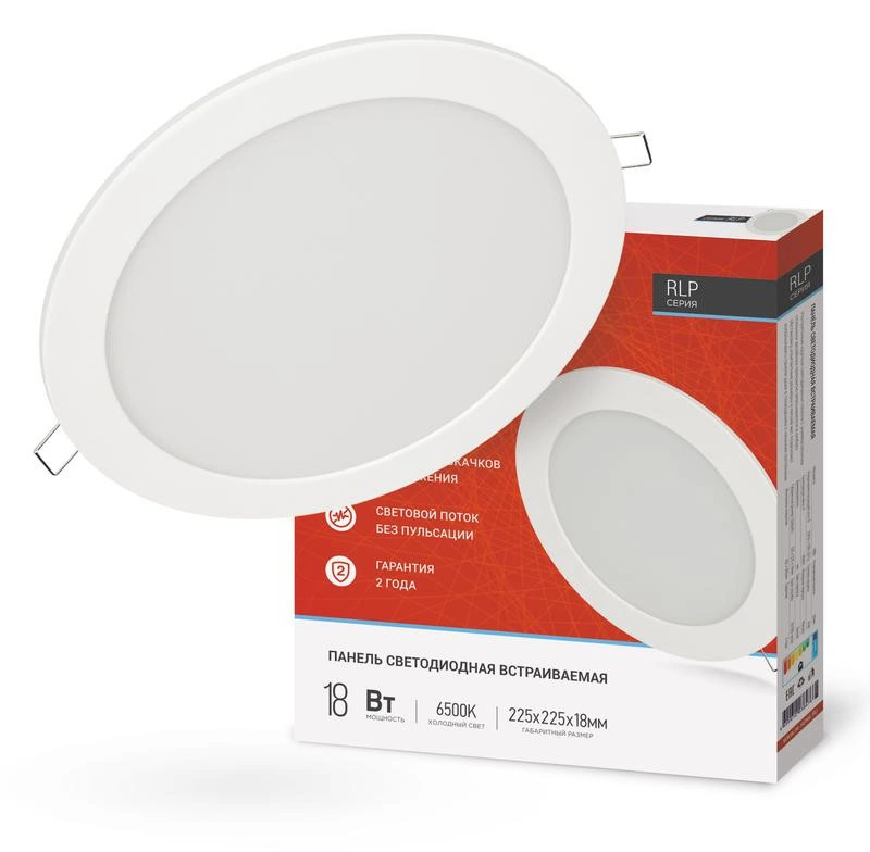 Полное описание: Светильник светодиодный круглый встраив. RLP 18Вт 230В 6500К 1080лм 225мм IP40 бел. панель IN HOME 4690612038476